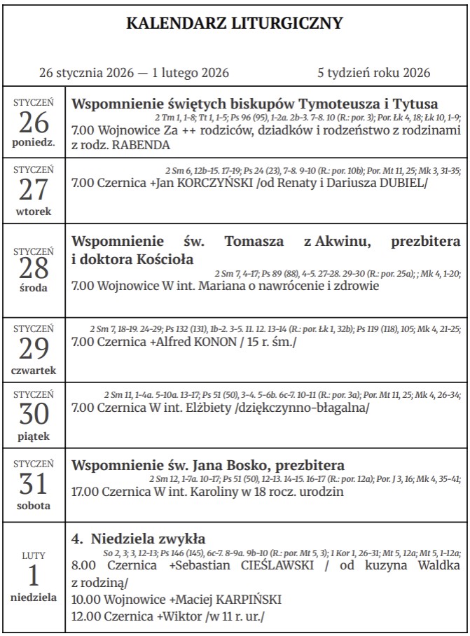 Aktualny kalendarz liturgiczny dostępny w ADSUM